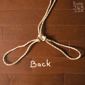 This knot is an interesting variation of the crown knot, a type of button knot tied with three stands. The Chinese flower knots are tied using a similar technique. The triple crown knot has two loops (also referred to as petals in Chinese knotting) that are fun to play with when creating a chest harness.