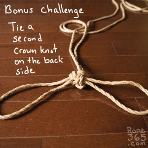 Using more complex knots can make a structure more solid and is a great way to add decoration to a chest tie. We’re starting some classic knots and will explore more in Day 222.