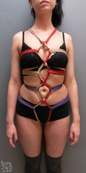 Credit: Knots: R/P:Ebi McKnotty – Square knot harness M:ADelightfulPain R/P: Ebi McKnotty Crown and double coin harness M/R: Ebi McKnotty P: AlexK7