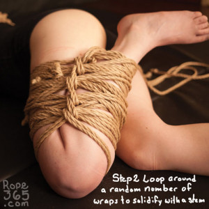 The essence of the frog tie is to hold the leg in a folded position, but it doesn’t always have to be a specific pattern. You can achieve a different aesthetic with something that is less constructed and the sensation will be much different.