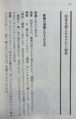 「 縄師は、縄一本で相手を責めたり、喜ばしたり、いろいろできるもので、アメリカ ではロープアーティストと言ってますね。
