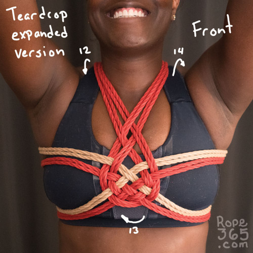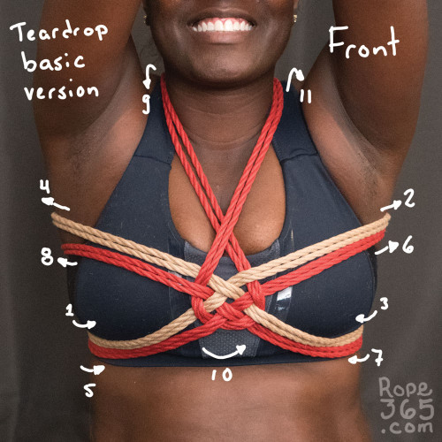 Being tied: Stability Check – sansblagueYour chest is a very mobile structure, and to tie a system that really sticks to you even if you move around is a real challenge. With different body shapes come different challenges. For example, if you are flat-chested, a diagonal structure in the harness can more easily slide out of place. You can check the stability of the chest harness through moving around, breathing, lifting your arms, curling your back and so on. Try moving around with the harness, observe what happens with the ropes and the tension, and discuss with your partner what can be done to create a relatively stable diagonal harness structure with a level of pressure that fits both your body and the type of dynamic you have with your partner. |